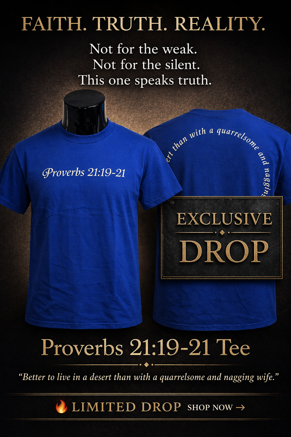 This bold, minimalist design features Proverbs 21:19-21 - a timeless statement that speaks without saying a word. Clean on the front. Powerful meaning behind it. Whether you’re wearing it casually or making a statement, this tee is built to stand out.